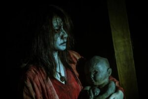 Production horrifique taïwanaise, Mudborn s’impose comme une belle surprise, mêlant folk horror, épouvante et science-fiction. Pour son premier long-métrage, Meng-Ju Shieh témoigne, en effet, d’un talent incontestable et nous offre un spectacle de qualité qui illustre, une fois de plus, le dynamisme du cinéma asiatique en matière de Fantastique. Après une séquence pré-générique jouant sur les jump scares et le gore, le réalisateur pose le contexte. Un contexte lié à la prochaine parentalité des deux héros et dans lequel la femme, enceinte, occupe une place centrale. La relation qui unit le couple est, en ce sens, très bien rendue et permet au spectateur de s’attacher presque immédiatement aux personnages principaux. De plus, le fait que le scénario, intelligent et sensible, marie les thèmes de l’art, de la religion (les croyances taoïstes) et de la maternité, confère au film une véritable originalité et engendre des séquences souvent troublantes. A cela s’ajoute le milieu du jeu vidéo qui sert de toile de fond au récit et qui est parfaitement exploité par le cinéaste. Ce dernier profite ainsi de la réalité virtuelle pour brouiller, par moments, les pistes entre réel et imaginaire, tout comme il gère à merveille les images issues des caméras de surveillance installées dans le domicile des futurs parents. D’abord assez obscure, l’intrigue, qui s’inspire librement d’une comptine taïwanaise, devient au fur et à mesure de plus en plus limpide et s’avère passionnante à partir du moment où elle nous plonge dans les secrets des talismans. De plus, Meng-Ju Shieh nous gratifie de quelques scènes aussi sanglantes qu’effrayantes à l’image de celle se déroulant dans l’appartement de Ah-Yi, mais aussi et surtout d’un dénouement très émouvant qui participe grandement à la formidable réussite que représente Mudborn.